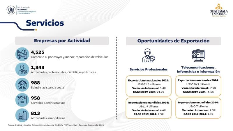 Personal de la Dirección de Análisis Económico del MINECO realizó la presentación al sector productivo para orientar decisiones empresariales, fortalecer a las PYMES y promover la diversificación de destinos, especialmente en mercados como Estados Unidos, México y Centroamérica, contribuyendo a consolidar una oferta exportable más competitiva.