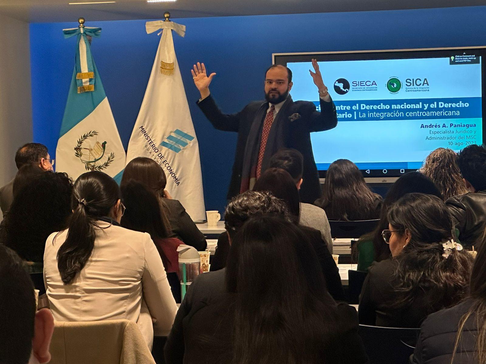 Se llevó a cabo una capacitación dirigida al personal técnico de la Dirección de Regulación, Vigilancia y Control de la Salud del Ministerio de Salud Pública y Asistencia Social, enfocada en el marco jurídico de la reglamentación técnica centroamericana. La jornada contó con el acompañamiento técnico de la Secretaría de Integración Económica Centroamericana (SIECA) y del equipo de integración económica del Ministerio de Economía, abordando la importancia de aplicar correctamente las normas regionales que garantizan estándares comunes de calidad, seguridad y transparencia en productos que circulan en la región.