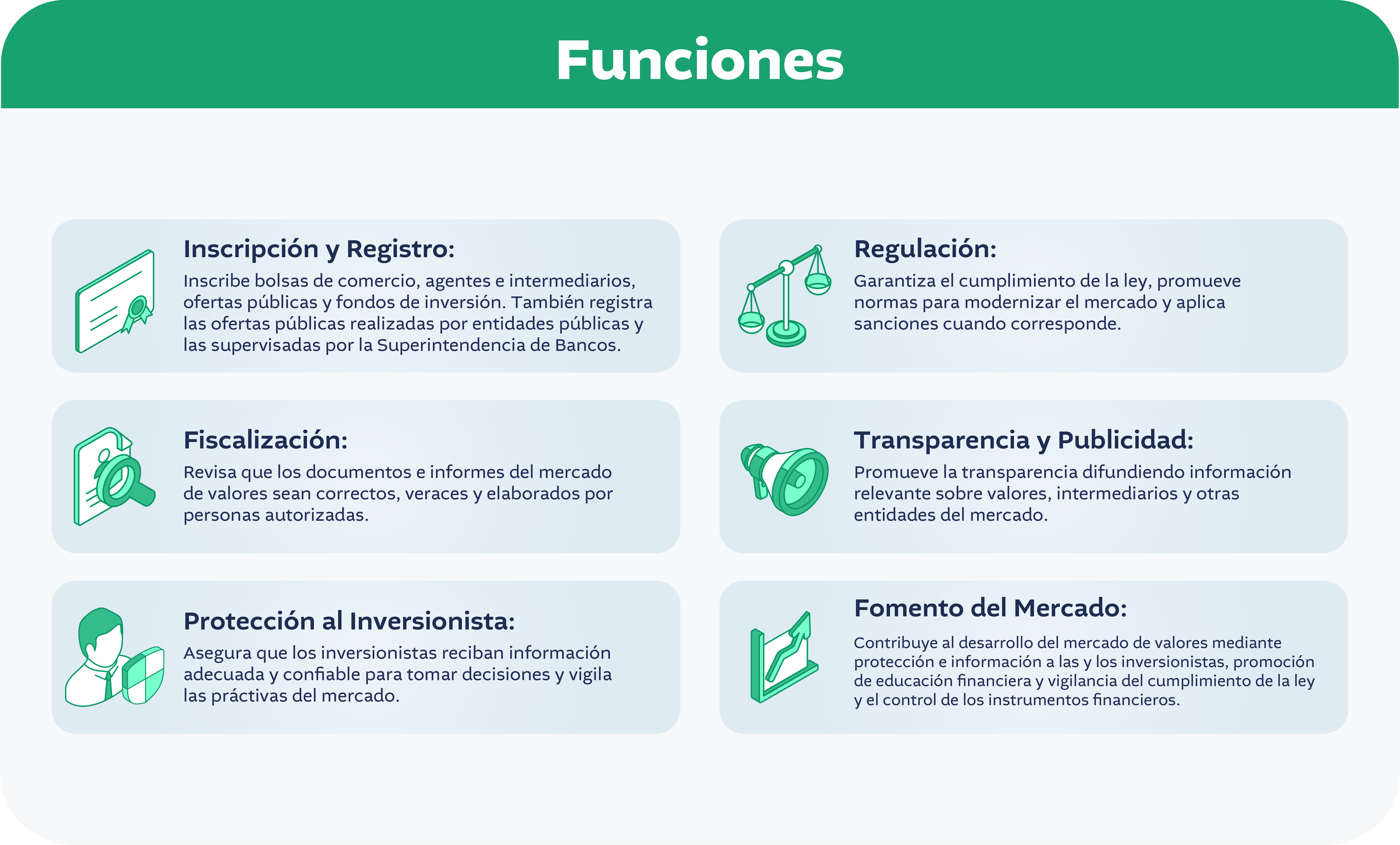 Supervisa y registra operaciones de mercado de valores para asegurar que cumplan la ley y tengan certeza jurídica.