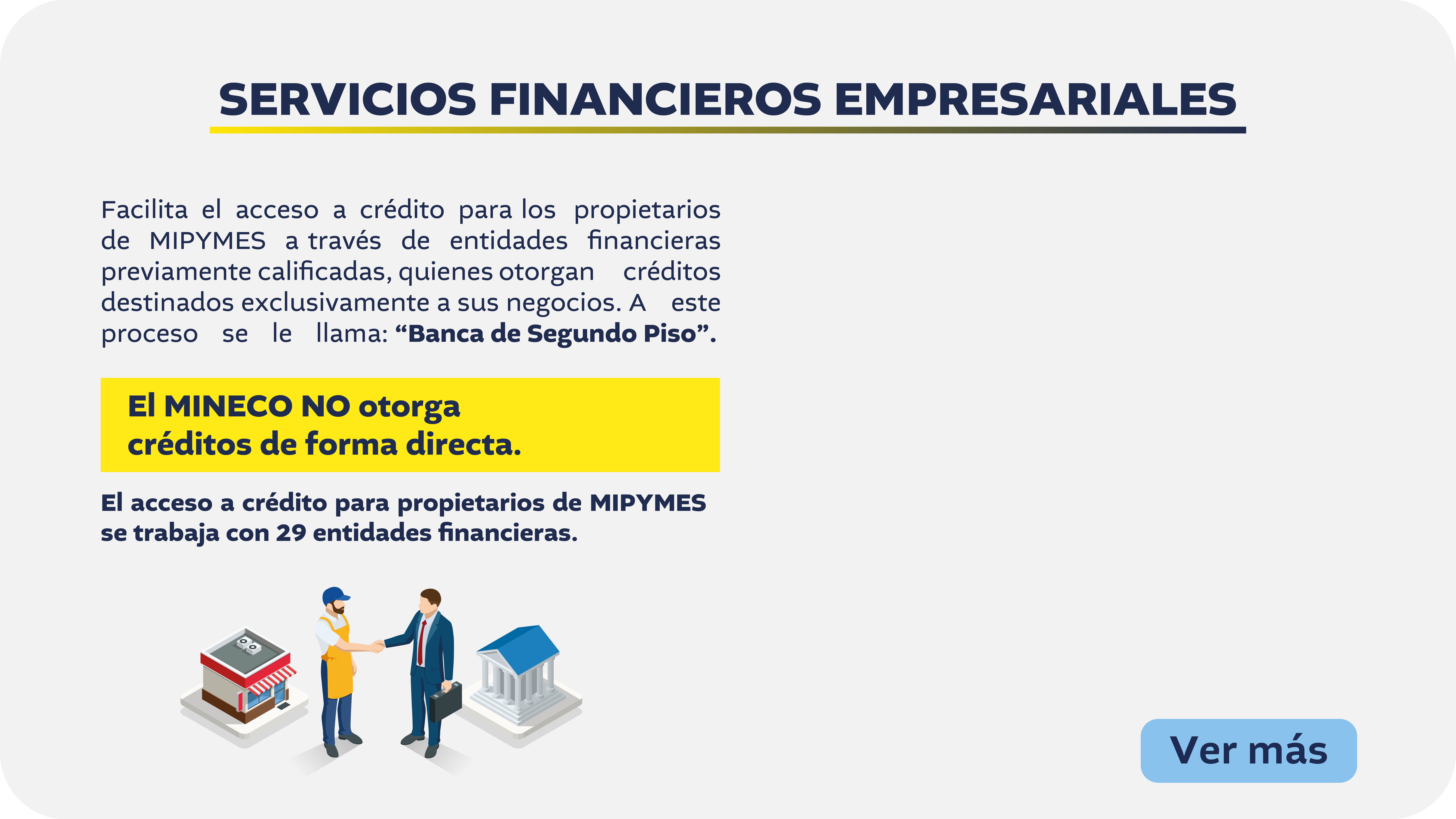 El viceministerio de Desarrollo de la Micro, Pequeña y Mediana Empresa trabaja para apoyar y hacer más competitivas a las MIPYMES que producen bienes o prestan servicios. Se divide en dos direcciones.