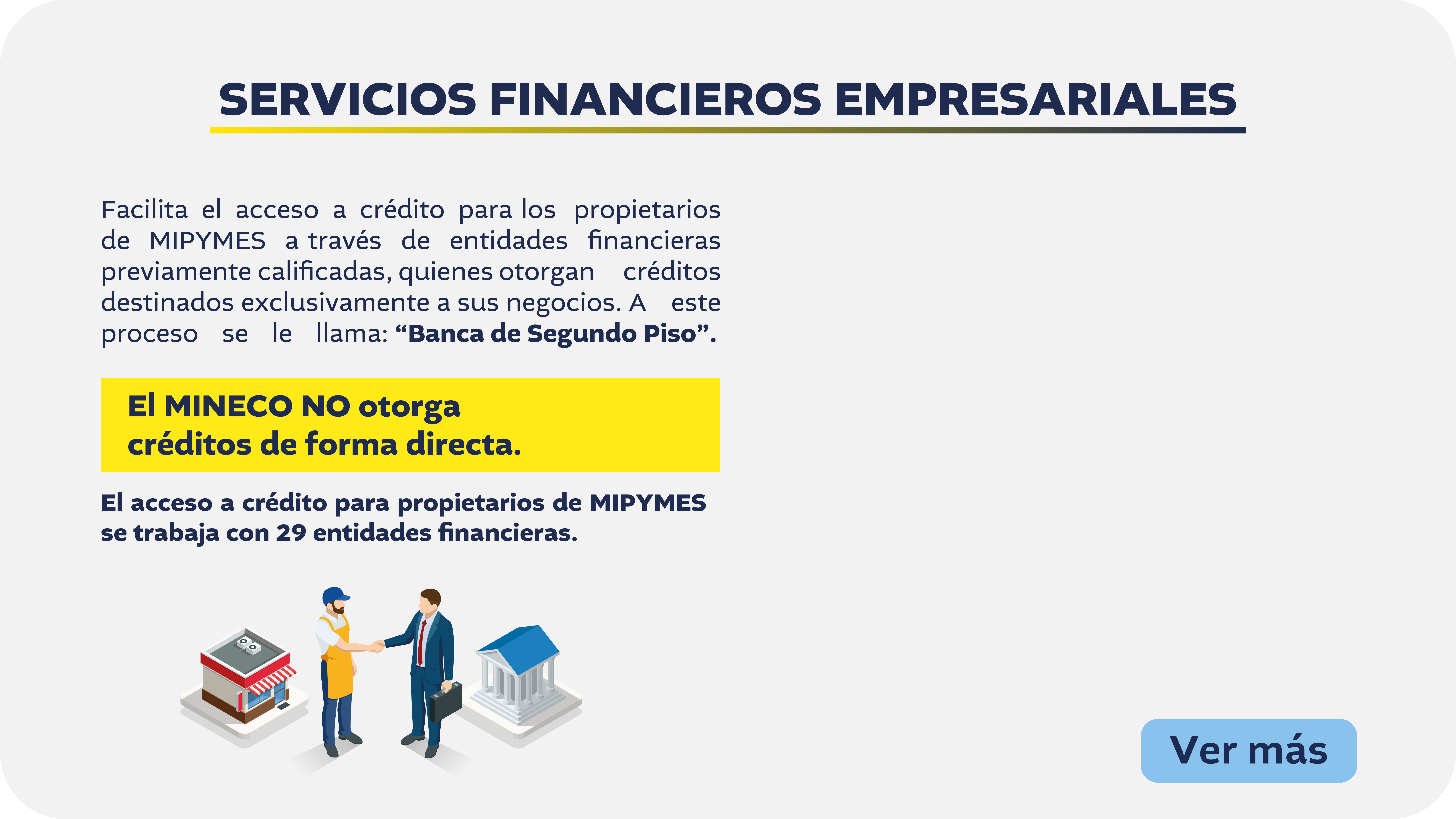 El viceministerio de Desarrollo de la Micro, Pequeña y Mediana Empresa trabaja para apoyar y hacer más competitivas a las MIPYMES que producen bienes o prestan servicios. Se divide en dos direcciones.